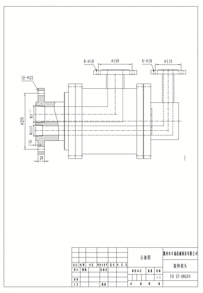 FR ST-DN200大型回轉(zhuǎn)窯旋轉(zhuǎn)接頭圖紙: