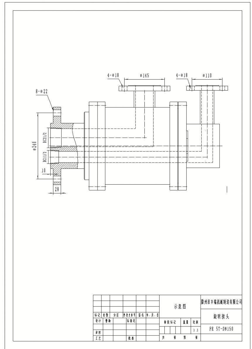 FR ST-DN150大型回轉(zhuǎn)窯雙通路旋轉(zhuǎn)接頭圖紙: